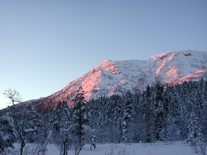 ”Jeg står i morgenlyset på høgda, aleine med mitt eget spor i nysnøen. Stillheten kimer i ørene mine, - jeg kommer liksom så nær meg sjøl. Så midt i sentrum at det nesten gjør vondt. ” Hans Børli