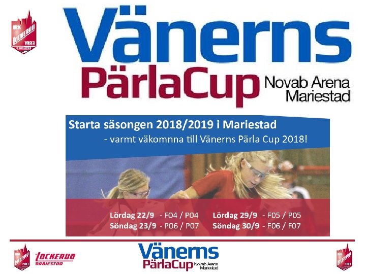 Viktiga datum & möten • • • Vänerns Pärla Cup Slaget om Ymsen Vinterbollen Föreningsavslutning Årsmöte 22 -23/9 och 29 -30/9 6/10 27 -28 /12 Onsdag 24/4, 2019 Tisdag 28/5 2019