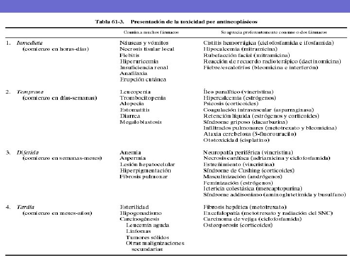 RAM GENERALES DE LOS CITOSTÁTICOS • • Hipoplasia y aplasia medular. Infecciones. Trastornos Gastrointestinales. Hepatotoxicidad. Alopecia. Síndrome febril. Otras: hiperuricemia, hiperpotasemia, trastornos de la coagulacion, oligospermia, amenorrea, abortos, etc.