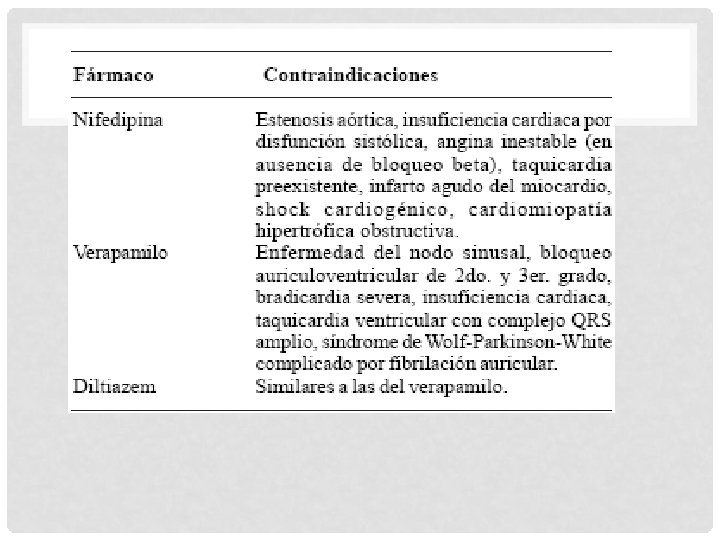 CLASIFICACIÓN DE LOS ANTAGONISTAS DE LOS CANALES DE CALCIO 2. -Benzodiazepinas 1. -Dihidropiridinas q. Nifedipina q. Amiodipina qnimodipina qnicardipina q felodipina q nisoldipina q. Diltiazenm 3. -Fenilalqilaminas q. Verapamil