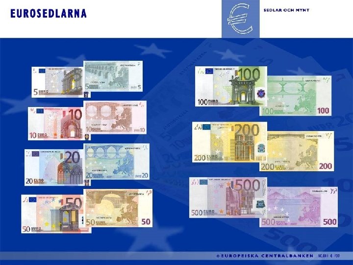 Start Nyårsafton 2001: 12 av europas då 15 EU-länder börjar använda eurosedlar och mynt. Euron fanns sedan 1999 som elektronisk valuta. 1962: Europeiska Kommissionen argumenterade för en monetär union. Oro för att ständiga valutakursförändringar underminerade de prisregleringar som kännetecknade jordbrukspolitiken. (jfr. argument för Bretton Woods) Frankrike: Svårare att konkurrera med Tyskland. Krävde att Tyskland skulle skriva upp värdet på D-marken. Resultat: Frankrike tvingades istället devalvera sin valuta vid upprepade tillfällen.