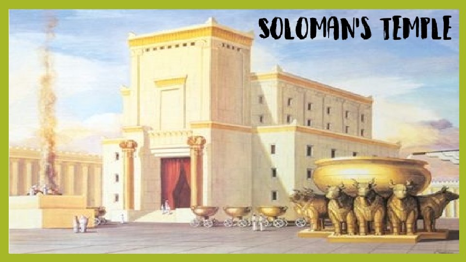 The Time of Judges, Kings, and Prophets § Eventually the Hebrews longed for a king to lead them. § God granted them a king; first Saul, then David. § David was a great king who won many military battles and established Jerusalem as his capital city. § David’s son Solomon built a temple that would come to be the centre of worship for Jewish faith for the next 1000 years. § Eventually, the Hebrew tribes split, and the northern tribes’ land took on the name “Israel”.