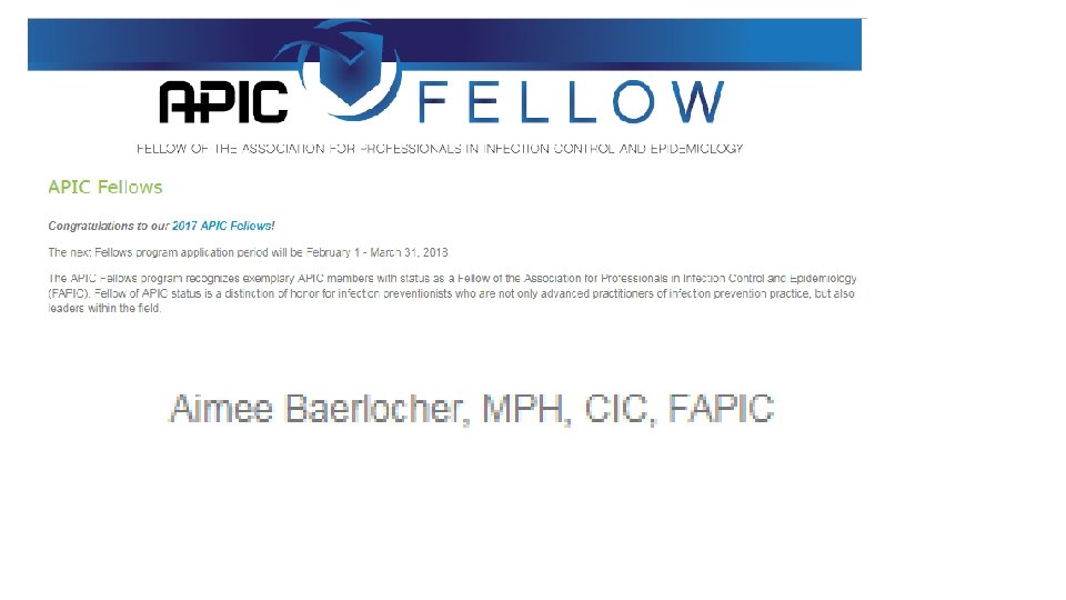 Beyond CIC • Chapter Opportunities! • Board membership • Committee membership • Proficient Practitioner Bridge (Coming soon!) • Enable IP’s to identify personal strengths and weaknesses to position to apply for APIC fellowship • APIC Fellowship • National APIC and CBIC board and committee opportunities