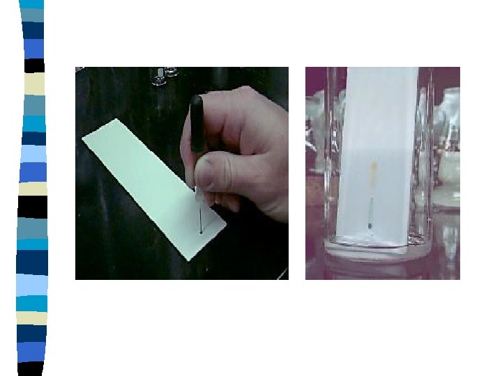 Chromatography - Basic requirements n Stationary Phase – paper, glass, plastic, gel n Mobile Phase – water, other solvent