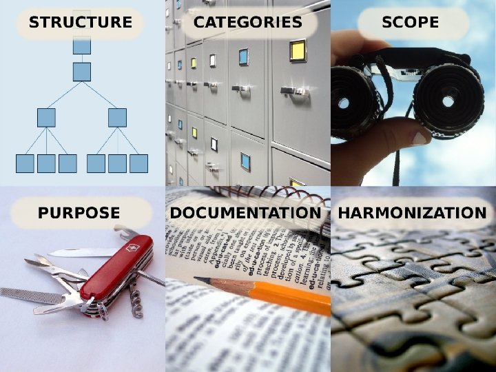 Standard Classifications IMPLEMENT POLICIES (customs, criminal legislation) STANDARDIZE CONCEPTS (jobs, education, natural phenomena) ORGANIZE AND PRESENT STATISTICS Standard Statistical Classifications