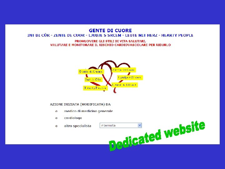 Gente di Cuore Int di Cûr Hearty People Zente de Cuor Ljudje s Srcem Leute mit Herz Promoting healthy lifestyles, evaluating and monitoring cardiovascular risk to reduce it