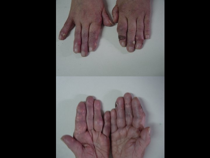 30 year old woman with chronic joint pain and swelling in hands and feet for 10 years.