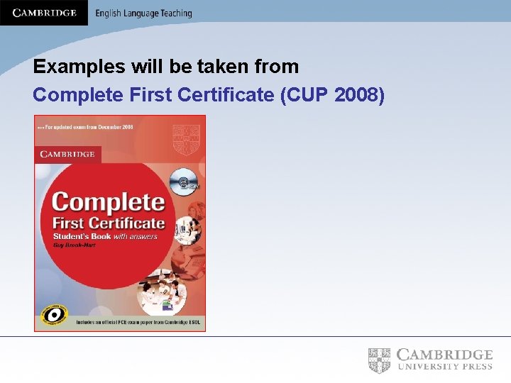 Examples will be taken from Complete First Certificate (CUP 2008)