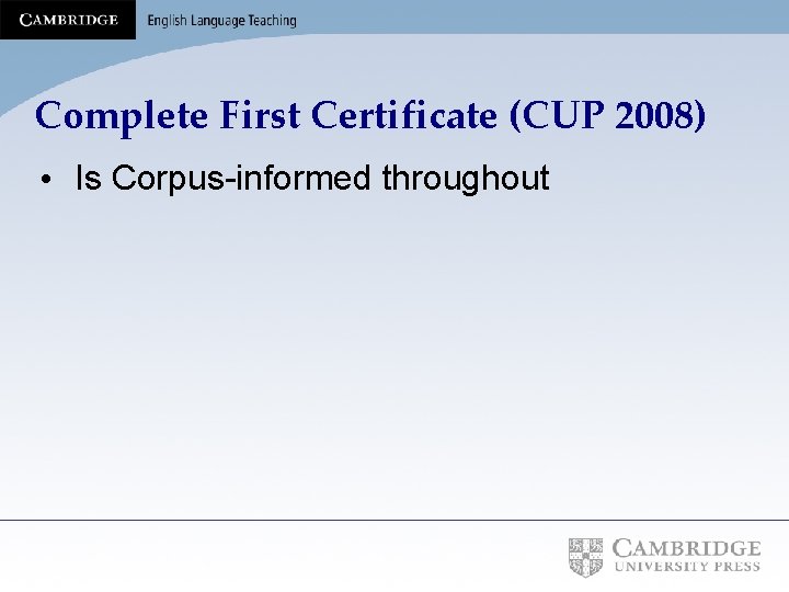 Complete First Certificate (CUP 2008) • Is Corpus-informed throughout