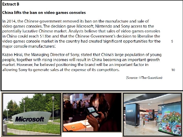 Sample question 2 4 marks, 2 of which are for application (context) Linking product theory with dynamic market theory Case study on next slide