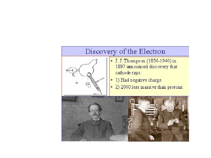 So two sets of laws. These describe most of the phenomena of our day to day experience: gravity, light, electricity, magnetism… With these, scientists of the late 19 th century understood the motion of the planets in great detail, and made great technical progress. They started, as well (somewhat inadvertently) to explore the world of atoms. The end of the 19 th century saw the discovery of the first elementary particle, by Thompson – the electron.