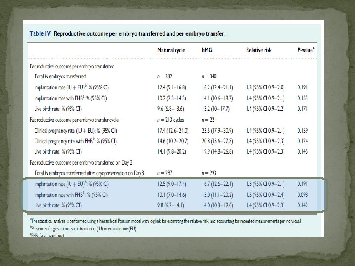 N-FET protokolü + P? � Geniş retrospektif bir çalışma, h. CG sikluslarda etkisiz (Kyrou D et al. Eur J Ob Gyn Rep Bio 2010). �RCT (n=435) (400 mg x 2 ET günü — Day 3 embryo) LBR artmaktadır.