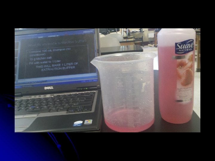 How do we make extraction buffer? - Combine 100 m. L shampoo (w/o conditioner) - 15 g non-iodized kitchen salt - Fill with water to 1 Liter THIS WILL MAKE 1 LITER OF EXTRACTION BUFFER