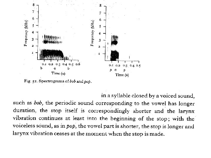 Fry: acoustic cues for consonants • Medially, English lenis plosives are fully voiced. • Initially or finally, they may be only partially voiced (plosives may be fully or almost fully unvoiced). In these cases other cues help identity: