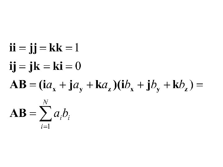 Producto Interno • Dados vectores a = a 1 i+a 2 j+a 3 k y b = b 1 i+b 2 j+b 3 k, el producto interno de a y b se define como Nótese que el producto interno es un escalar.
