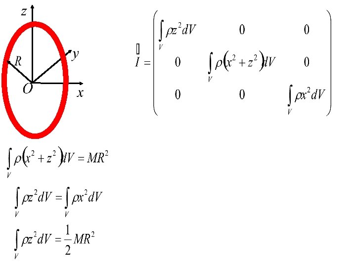 Calcular el tensor de inercia de un anillo de masa M y radio R, usando los ejes que pasan por su centro de masas.
