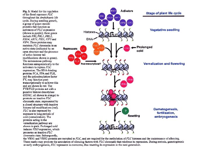 Il complesso PAF 1 like di arabidopsis è necessario per avere alti livelli di espressione di FLC PAF 1 agisce determinando la trimetilazione H 3 -K 4 della regione della cromatina in cui si trova il gene FLC Varietà annuali invernali di arabidopsis che contengono l’allele dominante FRI hanno livelli più elevati di H 3 -K 4 trimetilazione rispetto alle varietà estive FRI promotore della H 3 -K 4 trimetilazione di FLC