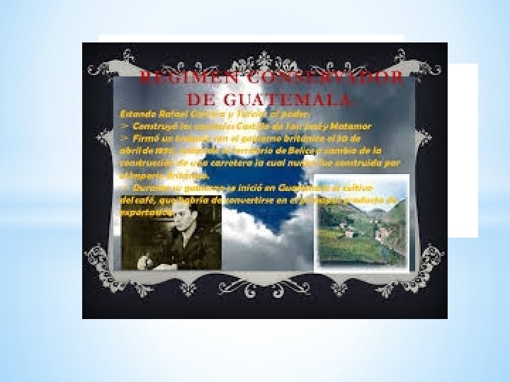 El régimen conservador de Rafael Carrera Los treinta años posteriores a la caída de Mariano Gálvez fueron dominados por la corriente conservadora. Aunque Rafael Carrera no gobernó durante todo ese período, la fuerza de su figura hace que se identifique este lapso con su nombre. El régimen atravesó diversas etapas. La primera se inicia con el triunfo de Carrera en 1838 -1840 que coincide con el desmantelamiento de las reformas liberales; la segunda, a partir de 1849,