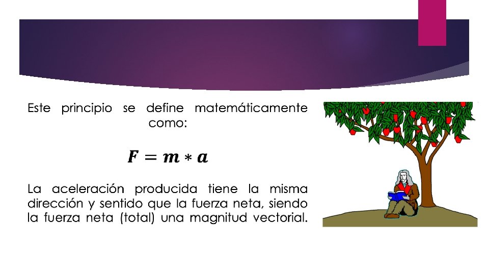 Segunda ley: masa ¿Qué pasará sobre un sistema si sobre el actúa una fuerza neta (total) diferente de cero? Si sobre un cuerpo actúa una fuerza neta, este adquirirá una aceleración directamente proporcional a la fuerza aplicada, donde la masa del cuerpo es una constante. Newton descubrió que el efecto de una fuerza depende de las características del cuerpo sobre el cual se ejerce, depende esencialmente de la masa del cuerpo.