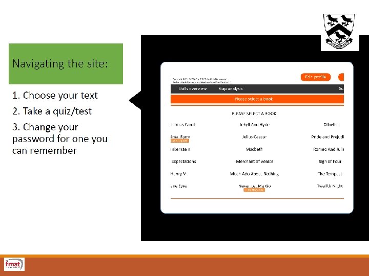 All students have unlimited, free access to the Pixl Lit App, which provides revision games and activities for English Literature subjects Login Details: School ID = FM 930 Username = surname and first initial in capital letters (MULLIGANJ, for example) Password = password