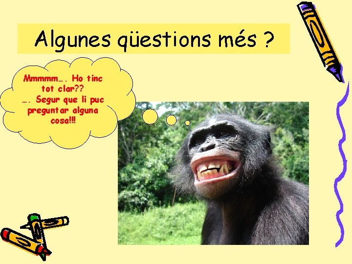 Algunes qüestions més ? Mmmmm…. Ho tinc tot clar? ? …. Segur que li puc preguntar alguna cosa!!!