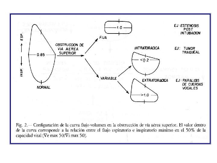 Espirometría Diagnóstico y Tratamiento • Pero se debe ser cauteloso al interpretar un cuadro obstructivo cuando los valores espirométricos (VEF 1 y CVF) están por encima de lo normal, dado que se puede observar en sujetos normales o atletas. • Un VEF 1 también declina en los transtonos restrictivos. • Otras variables utilizadas FEF 25 -75, FEF 50, FEF 75 poseen demasiada variabilidad.