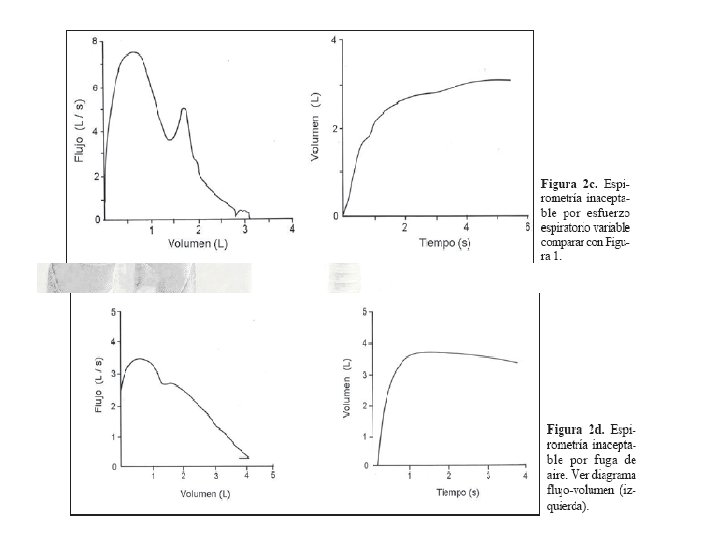 Condiciones del Paciente • • Pinza nasal adecuada. Primero estabilizar el volumen corriente. Inspirar profundamente hasta CPT. Espirar en forma forzada hasta 6 seg. > 10 años, en < de 10 años 3 segundos es aceptable. • Inspirar en forma forzada.