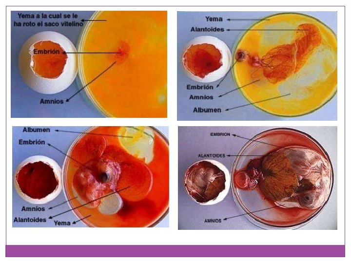 EL DESARROLLO EMBRIONARIO EN VERTEBRADOS OVÍPAROS Desarrollo del embrión en el interior de huevos que son dejados por las hembras fuera de su cuerpo para que se desarrollen