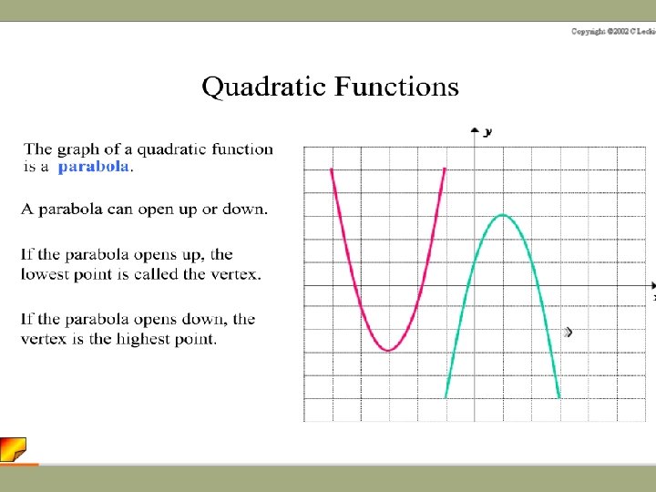 Outline Graph of: 1. Linear Function 2. Quadratic Function 3. Exponential Function