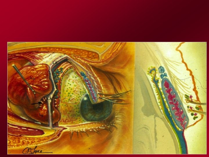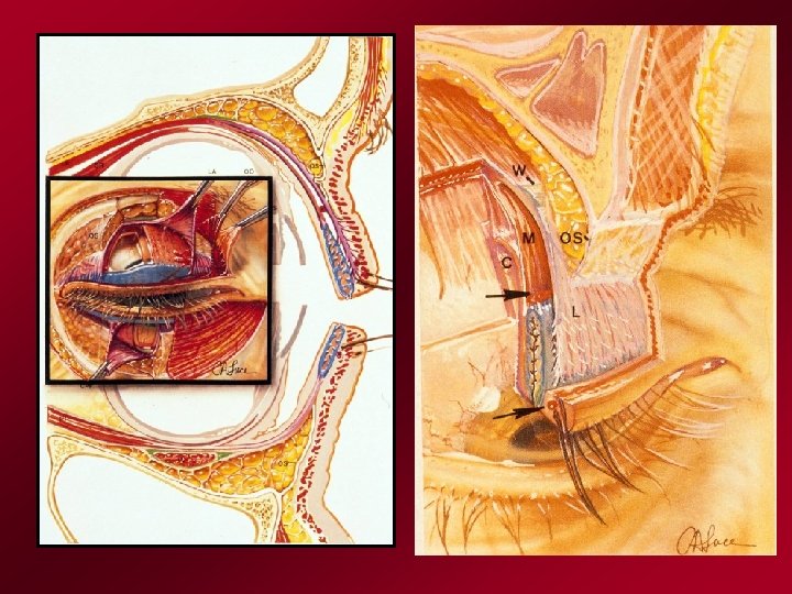 Eyelid anatomy • Tarsus – length 25 mm – thickness 1 mm • Height: • Upper 8 - 12 mm • lower 4 mm