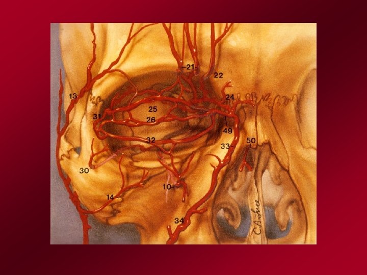 Innervation • Sensory – V. cranial nerve ( nervus trigeminus) first branch ophthalmic nerve and second branch maxillary nerve • Motor – III. , VII. cranila nerve and sympathetic nerves