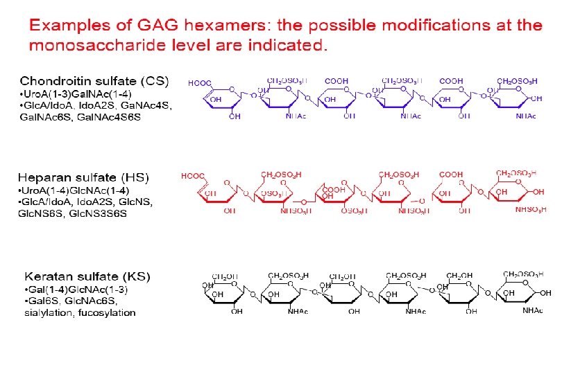 Lessons from Gene Manipulation or Mutations N-Linked Glycosylation • GPT KO in mouse • Glc. NAc. T KO in mouse • CDG GSLs • Glc. Cer, Neu. Ac & Gal. NAc transferase KO in mouse • lysosomal storage disorders PGs • Inhibition of CS synthesis using RNAi • Hyaluronan synthase disruption GPIs • Paroxysmal nocturnal haemoglobinurea