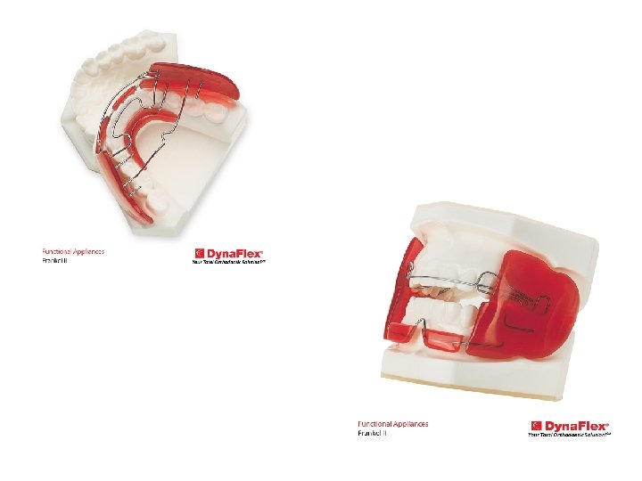 FR III - Used for Class III correction - Lip pads are in the maxillary arch - Labial bow resting against mandibular teeth. Protrusion bow is on the upper teeth and is made of 0. 8 mm wire forward movement of maxillary incisiors if desired. - The occlusal rest is on the mandibular molar unlike in FRII where it is on the maxillary molar