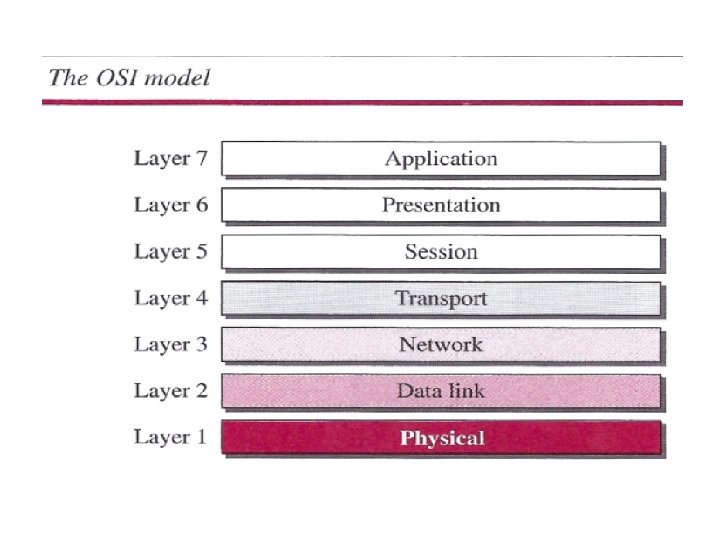 THE OSI MODEL • Almost three-fourths of the countries in the world are represented in the ISO. • An ISO standard that covers all aspects of network communications is the Open Systems Interconnection (OSI) model. • It was first introduced in the late 1970 s. ISO is the organization; OSI is the model. • An open system is a set of protocols that allows any two different systems to communicate. • The purpose of the OSI model is to show to facilitate communication between different systems.
