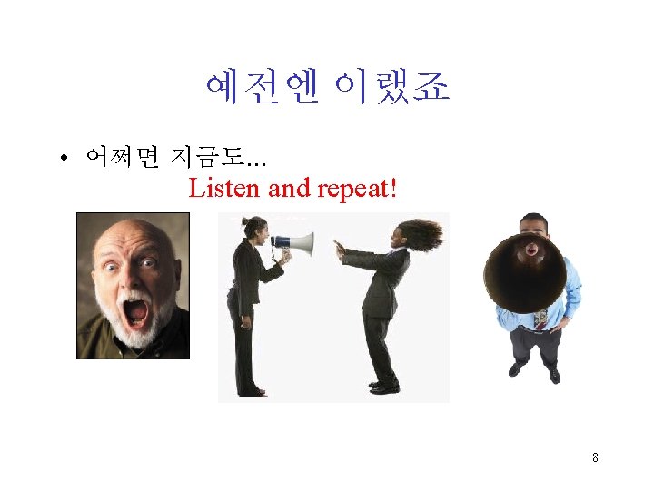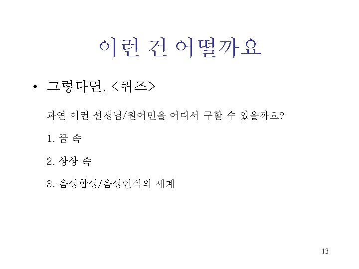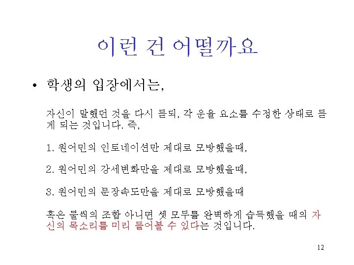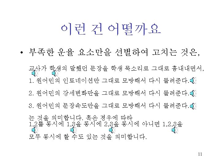 운율이란? • 이들 구성요소들은 음성학적으로 다음과 같이 불립니다 • Fundamental frequency (F 0, Pitch), Hz Intensity (Loudness), d. B Duration (Length), msec 6