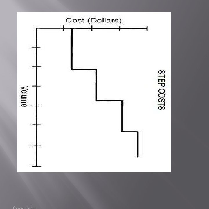 Step cost Ø It remains constant for a range of activity levels, then, on further increase in activity, the cost jumps to a new level and remains constant over a certain range until the next jump occurs