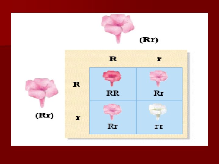 INCOMPLETE DOMINANCE n Sometimes the F 1 offspring will have a phenotype in between that of the parents, a relationship called incomplete dominance.