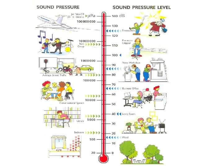 Sound Pressure Level Corresponding to audio range of Sound Pressure 2 e-5 N/m 2 - 0 d. B 20 N/m 2 - 120 d. B Normal SPL encountered are between 35 d. B to 90 d. B For underwater acoustics different reference pressure is used Pref = 0. 1 N/m 2 It is customary to specify SPL as 52 d. B re 20 Pa