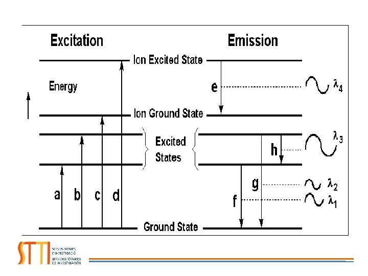 FUNDAMENTO ICP-OES La muestra pasa a través del plasma El plasma proporciona energía a la muestra llevándola a estados energéticos superiores La muestra tiende a recuperar su estado fundamental al cesar la energía La muestra emite radiación con una longitud de onda que es característica del elemento que la compone