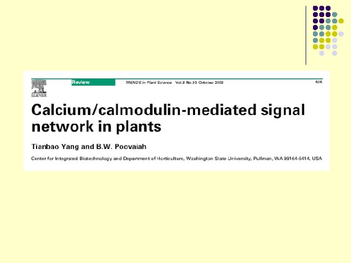 l Aumentos de Ca 2+ ocorrem em células-guardas de estômatos no mecanismo de fechamento induzido por ABA (ÁCIDO ABSCÍSICO). l Ca 2+ pode se ligar a uma proteína calmodulina e ativar várias enzimas. l Há proteínas quinases dependentes de Ca 2+ envolvidas na resposta de fechamento estomático induzida por ABA. l Esse processo foi estudado na regulagem de canais de ânions no tonoplasto de células guardas de Vicia faba. l DAG (lipídio associado à membrana) ativa proteína quinase C (PKC) que fosforila canais de íons, fatores de transcrição e outras enzimas.