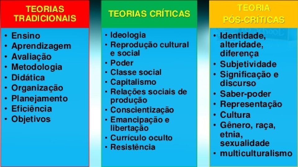 Historicamente: Currículo - formato grade • Grade: todo como soma das partes • Disciplina: fim em si mesma (Independente) • Ensinar: expor claramente o conteúdo • Aprender: ouvir atentamente e assimilar o conteúdo • Soma de saberes como suficiente • Avaliação das partes como suficiente