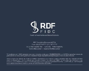 RDF Consultoria Empresarial LTDA FONE: (51) 3377 – 9787 / (51) 3377 – 5737 Av. Dr. Nilo Peçanha 1851 – Conj. 602 www. rdffidc. com. br | investidor@rdffidc. com. br Porto Alegre / RS