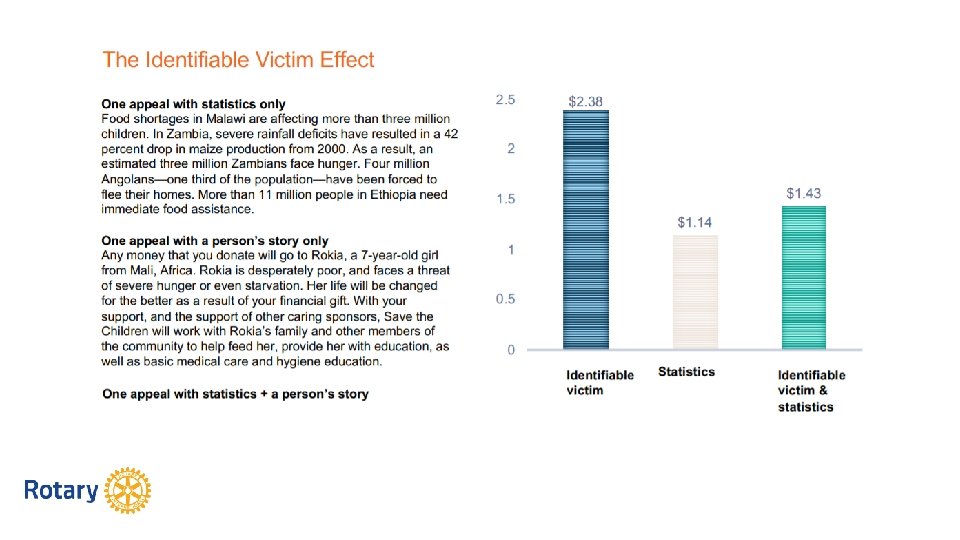 DONORCENTRIC COMMUNICATION Other Impediments to Success § Can’t accept a gift when/how the donor wants to give. § More focus on “Rotary”, less on the program and it’s impact. § Only ask your club members. § Too few fundraising programs. § No or limited stewardship plan.