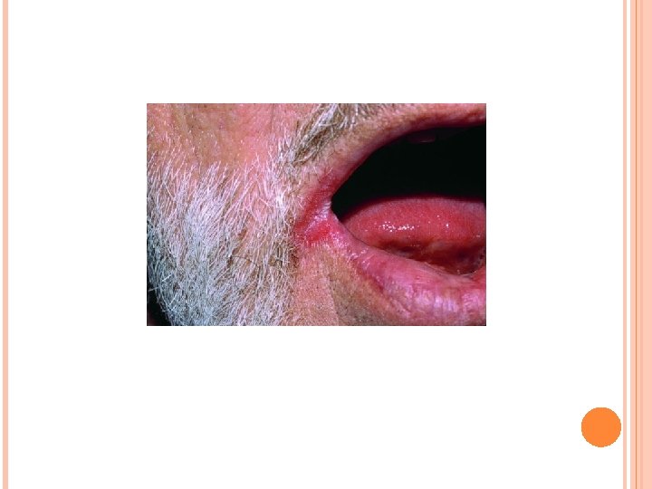 Typical lesion: • Central denudation leaving a fiery red, raw surface • Thick, white plaques at periphery