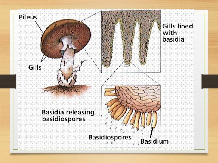 FUNGI • Club Fungi –Basidiomycetes • • Mushrooms are club fungi Have a tendency to reproduce sexually Asexually reproduction is rare Three visible structures of mushrooms • Stipe • Cap • Gills made from tightly packed mycelia • Fruiting bodies are called basidia