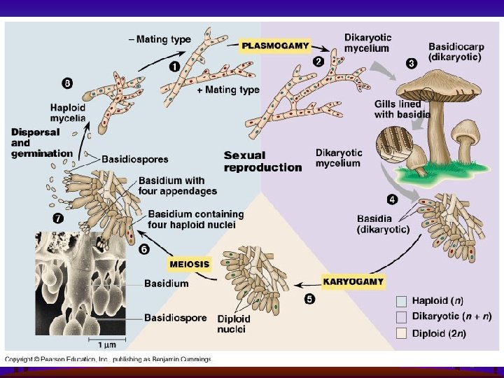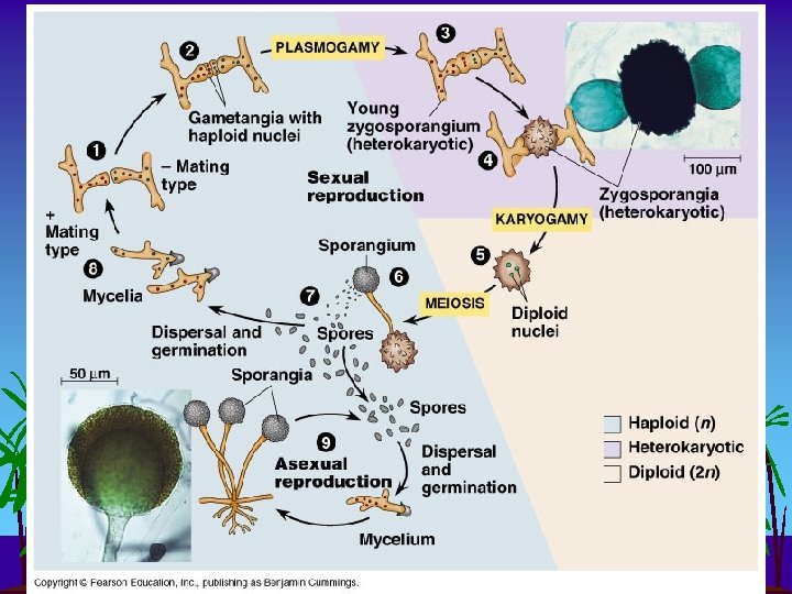 Fungal Reproduction Asexual – haploid spores (conidia/sporangia) l Sexual – plasmogamy (dikaryon) – karyogamy (diploid) – Syngamy (diploid) l