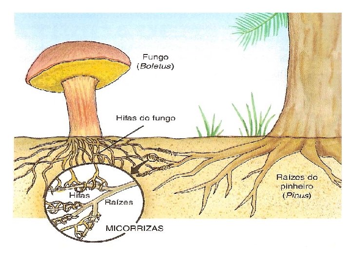 Fazendo parte de associações mutualísticas, como os líquens ( associação entre algas e fungos) e as micorrizas. 12