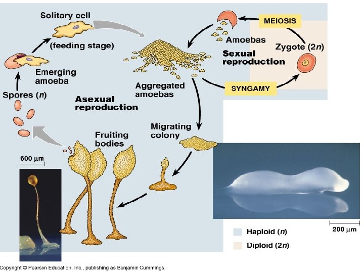 Dominant state near rich sources of food (phagocytic) Fruiting body Spore-bearing structure Cells aggregate into a slimy mass when food is scarce and moves to a better location http: //www. nsf. gov/od/lpa/news/03/pr 03106_images. htm