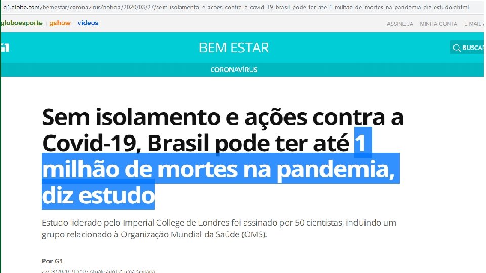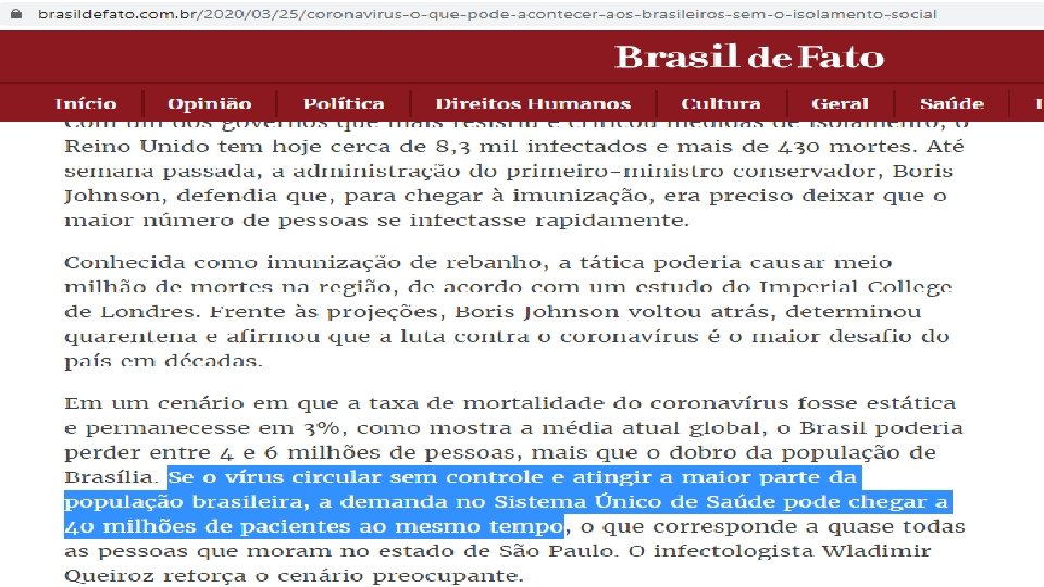 HISTÓRICO BRASILEIRO ELES NÃO SABEM! COMO SABE QUANTOS SERÃO INFECTADOS? ELES ESTIMAM!