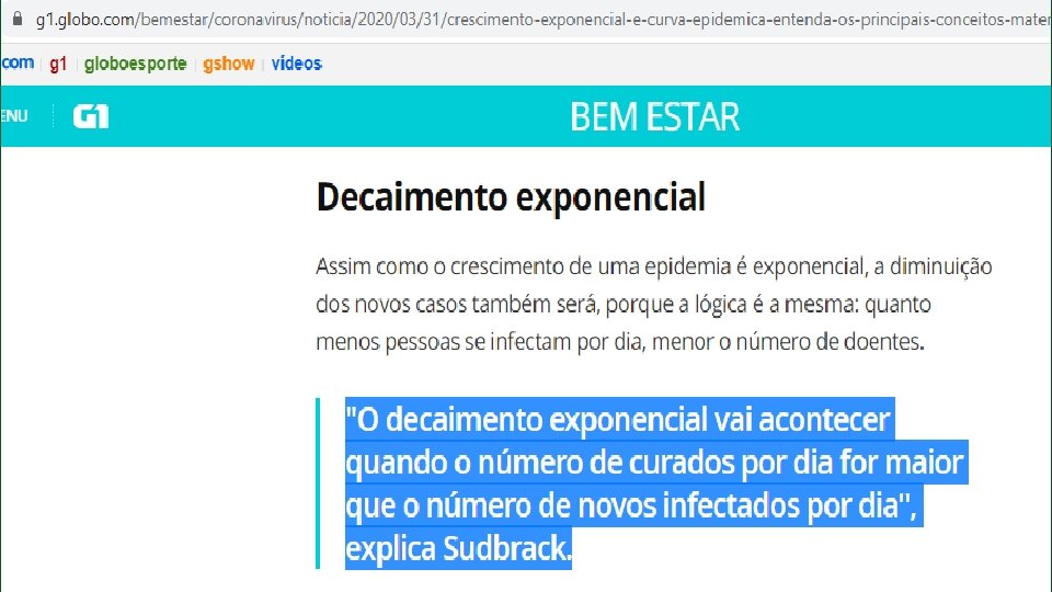 PARA SABER MAIS: COVID 19 - É hora de relaxar? Disponível em: https: //www. youtube. com/watch? v=yw 0 i. QYLkc. JI&feat ure=youtu. be Coronavirus e Vitórias-Régias: Entendendo a Curva Exponencial do Coronavirus. Disponível em: https: //www. youtube. com/watch? v=s-lg. S-4 Xqy 0